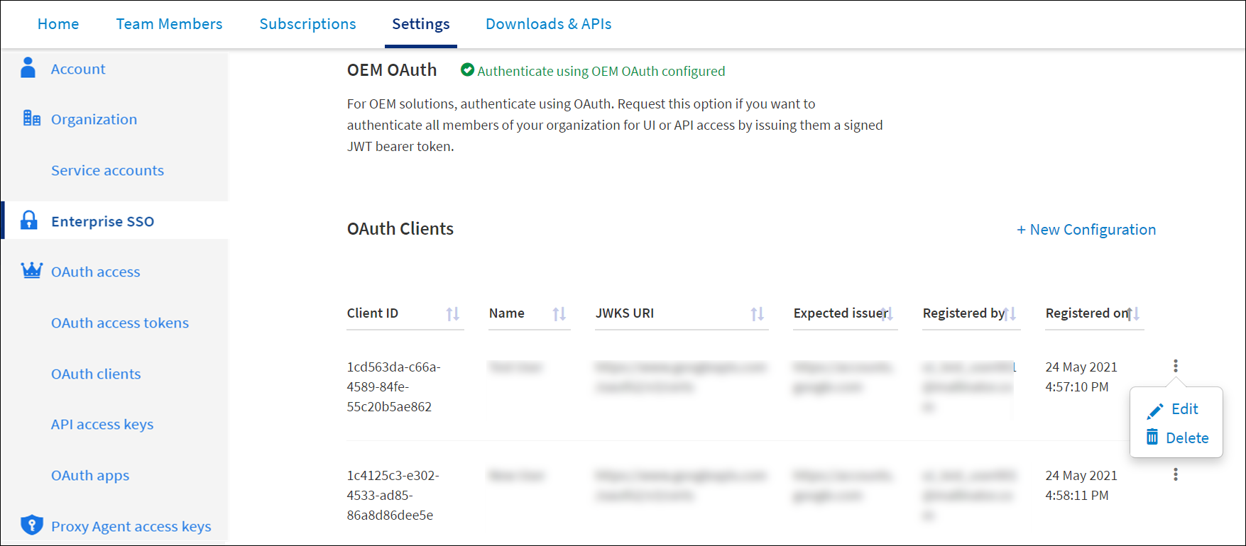 Note: Deleting a client also deletes all the tokens issued to the client.